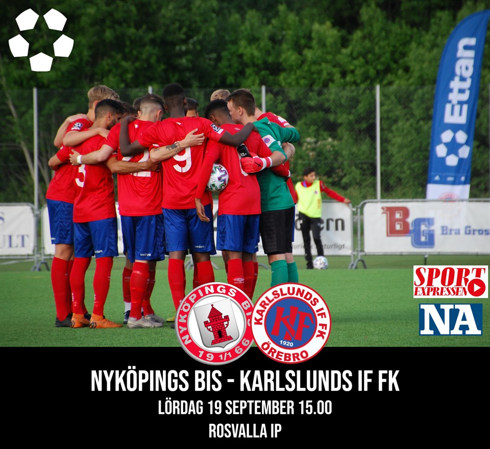 Imorgon är det dags för Karlslunds IF FK att spela sin 18:e match i årets Ettan Norra, och vi gör det borta mot Nyköpings BIS med avspark kl 15.00 på Rosvalla IP. Fjolårets tabellåtta har i år haft det tuffare och ligger just nu på en 15:e plats i tabellen med nio ihopskrapade poäng hittills och kommer senast från en 1-3 förlust hemma mot tabelljumbon IFK Berga. Nyköpings två vinster har kommit hemma mot IF Karlstad Fotboll och borta mot IFK Berga, och de har också tagit ytterligare tre poäng efter oavgjorda matcher mot Örebro Syrianska IF, Täby FK och (återigen) IF Karlstad Fotboll. För inte alltför länge sedan spelades det första mötet mellan Karlslund och Nyköping, en match där Karlslund vann med 1-0 på Karlslund Arena efter mål av Tidjani Diawara. En match som Karlslund vinner rättvist, men alltså bara med uddamålet. Karlslund kommer senast från en 2-1-seger borta mot IF Karlstad och lyfte i och med detta över det nedre kvalstrecket upp till en 12:e plats. Trots en bitter 0-1-förlust mot BP mellan de två vinsterna hemma mot Nyköping och senast borta mot Karlstad så blåser det positiva vindar i lägret hos Karlslund och vi reser till Nyköping med siktet inställt på tre poäng. Matchen sänds på SportExpressen Play och på NA. Lycka till boys!