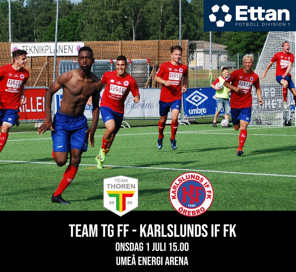 Dags för omgång 5 av 30 i Ettan Norra och Karlslund har tagit sig upp en 70 mil i landet och befinner sig i Umeå för match mot Team TG. Observera den tidiga matchstarten (för att vara en onsdag), kl. 15.00 på Umeå Energi Arena. Historisk sett, även om det är en rätt kort historia då vi bara går tillbaka två år när lagen möttes för första gången, så har matcherna mellan Karlslunds IF FK och Team TG varit rätt speciella. 2018 möttes lagen på Karlslund Arena i den sista omgången där vinst för hemmalaget skulle innebära säkrat kontrakt i Ettan. TG kvitterade till 2-2 i den 94:e minuten, och Karlslund fick istället säkra kontraktet ett par veckor senare i kvalet. Kvittering på övertid gällde även under förra säsongens hemmamatch då norrlänningarna kvitterade till slutresultatet 1-1 i den 91:a minuten. Förra säsongen uppe i Umeå hade Karlslund en tvåmålsledning redan efter 25 spelade minuter men TG kom igen och vände till 4-2. Karlslund och TG kommer nu senast från två oavgjorda matcher, där Karlslund spelade 1-1 i derbyt hemma mot Örebro Syrianska IF, och där TG spelade 3-3 borta mot IF Brommapojkarna. När sista målet kom i matcherna, undrar ni? I Karlslunds match kvitterar gästerna till 1-1 i den 89:e minuten, och TG kvitterar till 3-3 borta mot BP i den 99:e minuten..! Läxan är lärd i det rödblåa lägret att vara på tårna i alla 90 minuter plus tillägg, i synnerhet mot detta lag! Karlslund har nu siktet inställt på säsongens första trepoängare. Matchen spelas som vanligt numera utan publik men går att se digitalt på SportExpressen Play och NA. Lycka till boys!