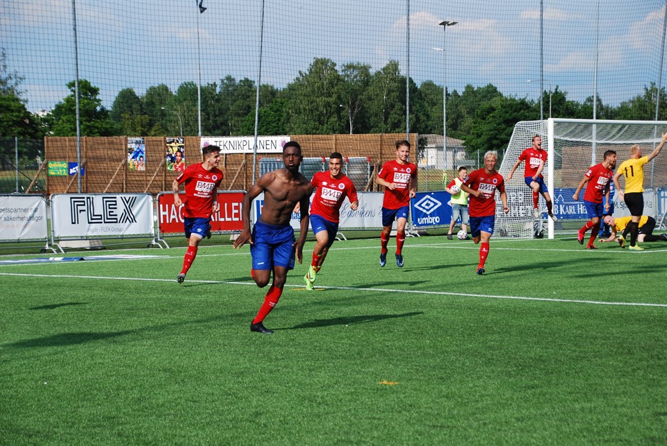 Ja, ett lokalderby brukar vara som upplagt för speciella drabbningar. Dagens derby mellan Karlslunds IF FK och Örebro Syrianska IF i Ettan Norra var inget undantag. Matchen slutar 1-1 efter att fyra tilldömda straffar under ordinarie tid, varav en togs tillbaka av domaren. Efter det väntade ytterligare straffar då matchen var tvungen att avgöras för att kora en segrare i kvalet till Svenska cupen. 10 straffar senare står Karlslund som segrare efter 5-4 i straffsparksläggningen och 6-5 totalt! Karlslund ställer upp med följande lag: Jakob Kindberg Gabriel Kopkin – Filip Stankovic – Adam Björk – Christopher Alp Ibrahim Habib – Justin Salmon – Sebastian Loyola Nydén Christer Lipovac – Tidjani Diawara – Martin Springfeldt Avbytare: Oscar Franck, Lukas Julher, Edvin Tellgren, Sermed Habib, Dennis Koss, Elias Jangdin, Salim Ali Mohammed Det är Karlslund som tar tag i taktpinnen direkt och står för det mesta av bollinnehavet medan Syrianska ligger lågt och väntar på misstag. Karlslund har dock svårt att skapa några konkreta målchanser, utan det blir mer halvlägen. Ställningen är 0-0 i paus. Under den andra halvleken är då det börjar hända grejer. Karlslund blir tilldelade två straffar (under vilda protester från gästerna) men där Christer Lipovacs och Tidjani Diawaras straffar räddas av syrianskamålvakten. I den 78:e minuten kommer inbytte Sermed Habib runt på kanten och slår in ett stenhårt lågt inlägg som Diawara slänger sig fram på och trycker in bollen i mål, 1-0 till Karlslund och vild glädje! I den 89:e minuten är det dags för nästa straff i matchen, den här gången är det Syrianska som tilldelas den. Straffen räddas av vår Jakob Kindberg, f ö hans andra raka straffräddning i årets seriespel och därmed fulltalig sådan, men returen går ut till en gulklädd som sätter 1-1. På övertid tilldelas Karlslund ytterligare en straff efter att bollen enligt huvuddomaren har träffat handen på en täckande gulklädd i straffområdet. Dock menar den assisterande domaren på motsatt planhalva att den inte gjorde det, och huvuddomaren ändrar sitt beslut… Nu är det hemmalagets tur att stå för protesterna! Matchen slutar 1-1 vilket innebär en poäng vardera i seriespelet. Matchen ska dock avgöras då den också räknas som kvalfinalen till Svenska cupen. Jakob Kindberg räddar en straff medan Karlslund sätter samtliga sina straffar genom mål av Christer Lipovac, Martin Springfeldt, Tidjani Diawara, Justin Salmon och Sermed Habib. In under matchen kom Lukas Julher och Sermed Habib. Känslan efteråt i hemmalägret är två tappade poäng i seriespelet, då Karlslund är det spelförande och bättre laget matchen igenom men där återigen Syrianska gör mål i slutet av matchen, men också en skön känsla att vara vidare in till Svenska cupen. NA: Straffmiss, målskytt och revansch - drama när Karlslund gick vidare i cupen Highlights från matchen Bilder från matchen Nästa match för Karlslunds IF FK spelas redan på onsdag då vi möter Team TG på bortaplan i Umeå.